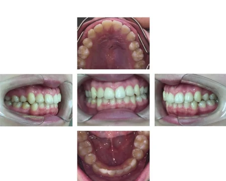 「八重歯と上下前⻭中央の⻭がずれていて気になる。ピアノの発表会があるのに人前で笑えない」とご相談がありました。