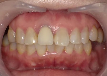 拝見したところ、全体的に歯の表面が黄ばんでいる状態でした。