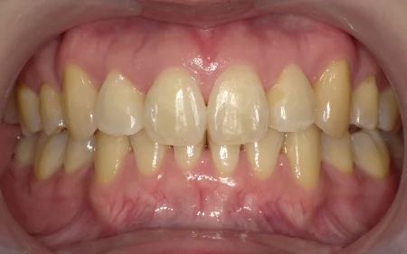 拝見したところ、全体的に歯が黄ばんでいました。