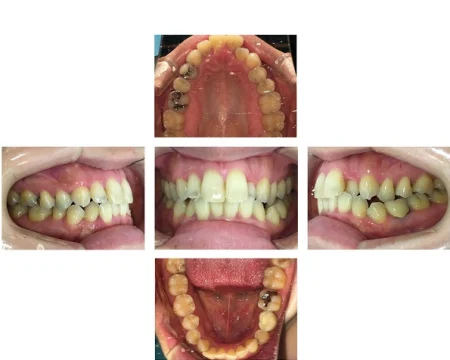 さらに、左上前歯(側切歯/2番)が下の歯よりも内側に入り込んで噛み合わせが逆になっている「クロスバイト」でした。