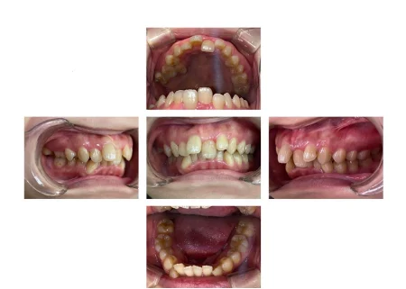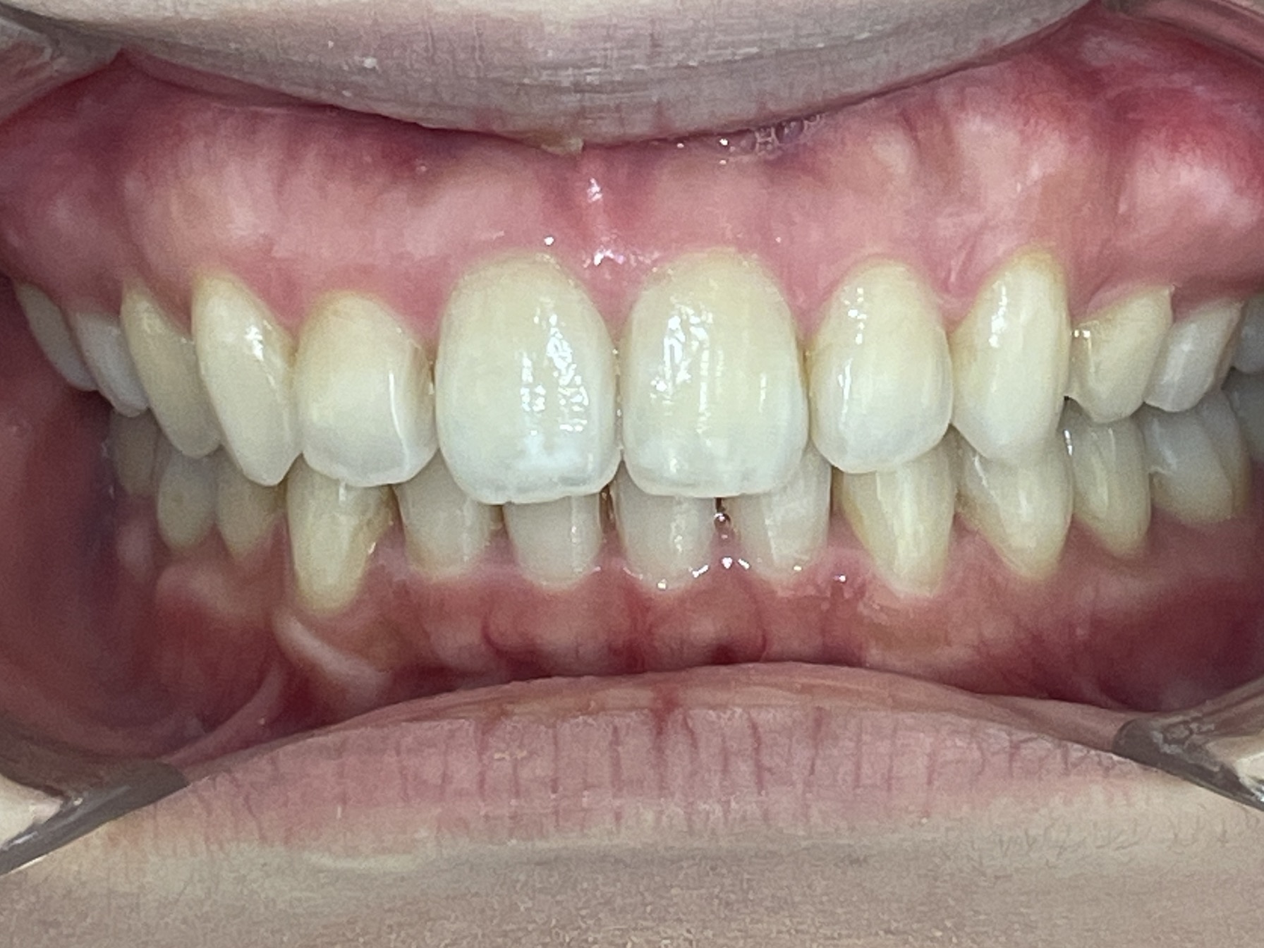 とくに上の前歯(中切歯/1番)2本は、歯が生えている角度の差が大きくて段差のようになっており、歯のガタガタが強調されて目立っていました。