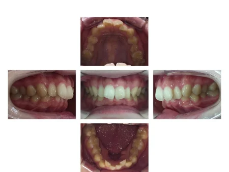 また、歯が全体的に重なり合ってでこぼこに生えており、特に上の前歯は前方に突き出した「上顎前突(じょうがくぜんとつ)」でした。