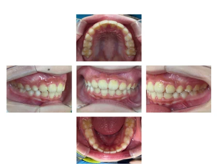 口周辺の筋肉のバランスを整え、正しく成長するように導く「マイオブレース」で治療しました。
