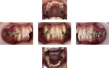 拝見すると、上下左右の前歯12本(中切歯/1番・側切歯/2番・犬歯/3番)が、デコボコに生えている状態の「叢生(そうせい)」でした。