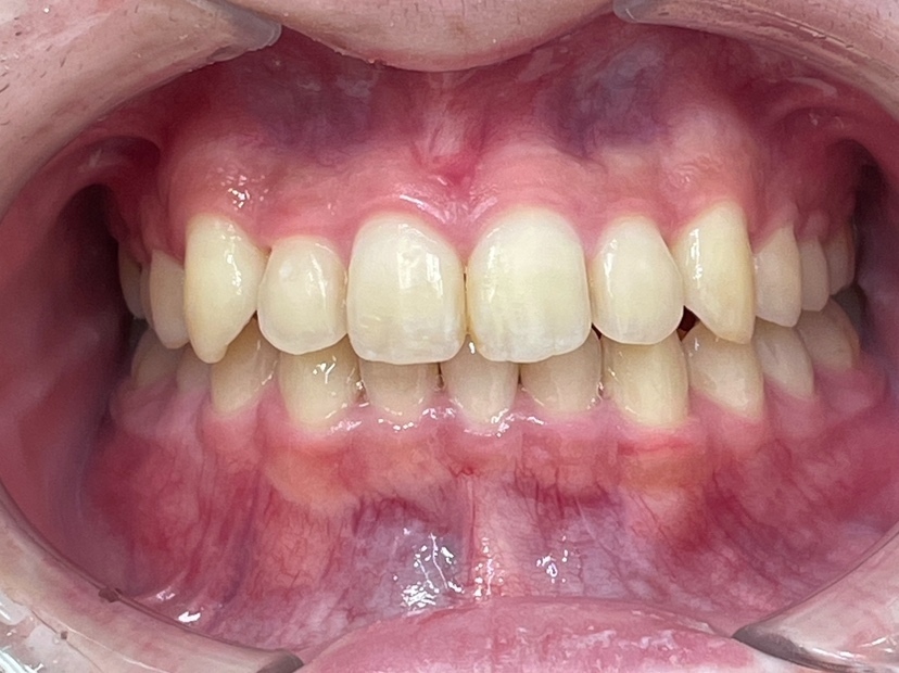 また、上の歯が下の歯に深く被さっている「過蓋咬合(かがいこうごう)」も認められ、噛み合わせが悪くなっていました。