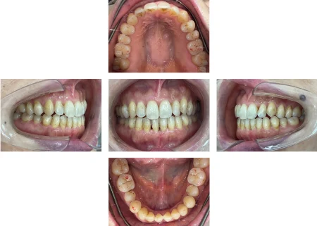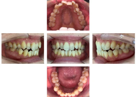 拝見すると、上下左右の前歯12本(中切歯/1番、側切歯/2番、犬歯/3番)が前後に重なっている「叢生(そうせい)」でした。