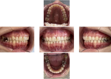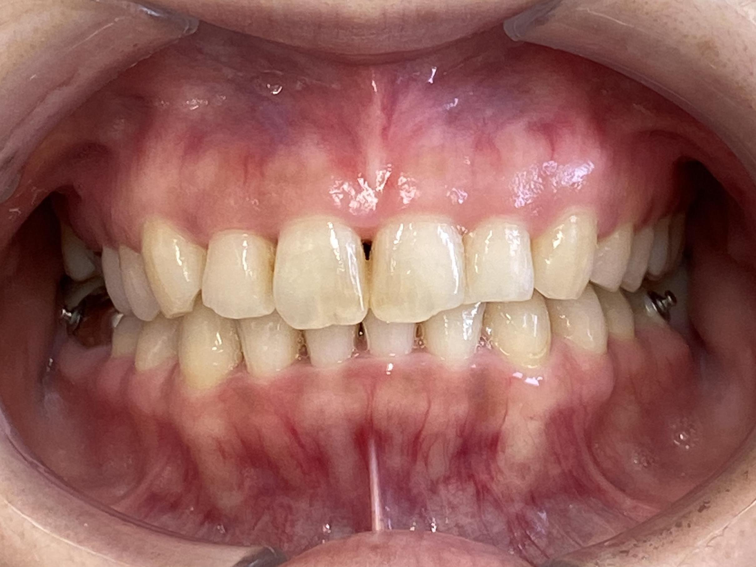 全体の歯がまっすぐ並んで自然な口元になり、噛み合わせの位置も適切になりました。