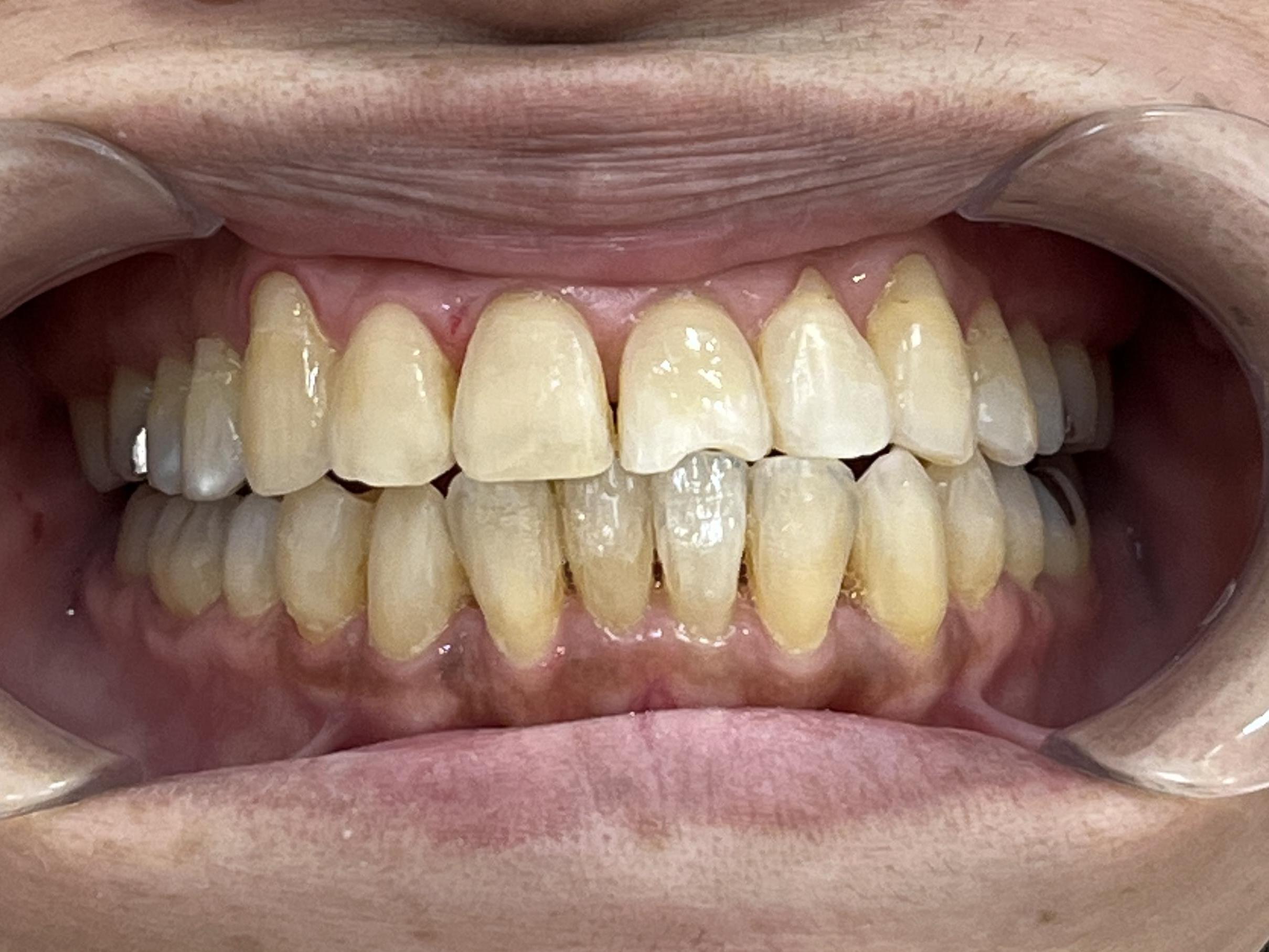 また、全体的に歯が黄味がかっていて、口元が暗い印象でした。