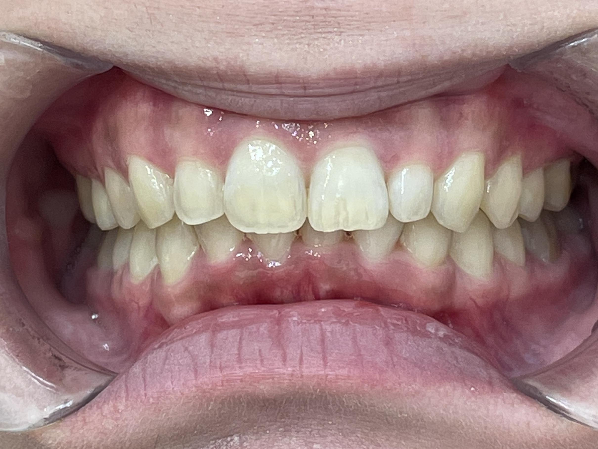 特に右下の前歯(中切歯/1番)は大きく重なり合って並んでおり、見た目が気になるとともに、虫歯や歯周病のリスクも高まっていました。