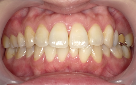 拝見したところ、全体的に歯の黄ばみがあり、口元が暗い印象でした。