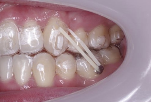 歯を効率良く移動させるために専用のボタンを歯に装着する場合もあります。