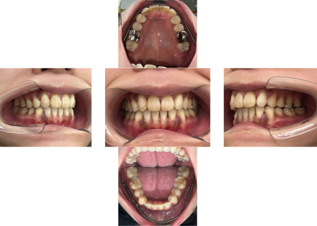 拝見したところ、上下の歯並びともに、歯が重なり合ってデコボコに並ぶ重度の「叢生(そうせい)」が見られました。