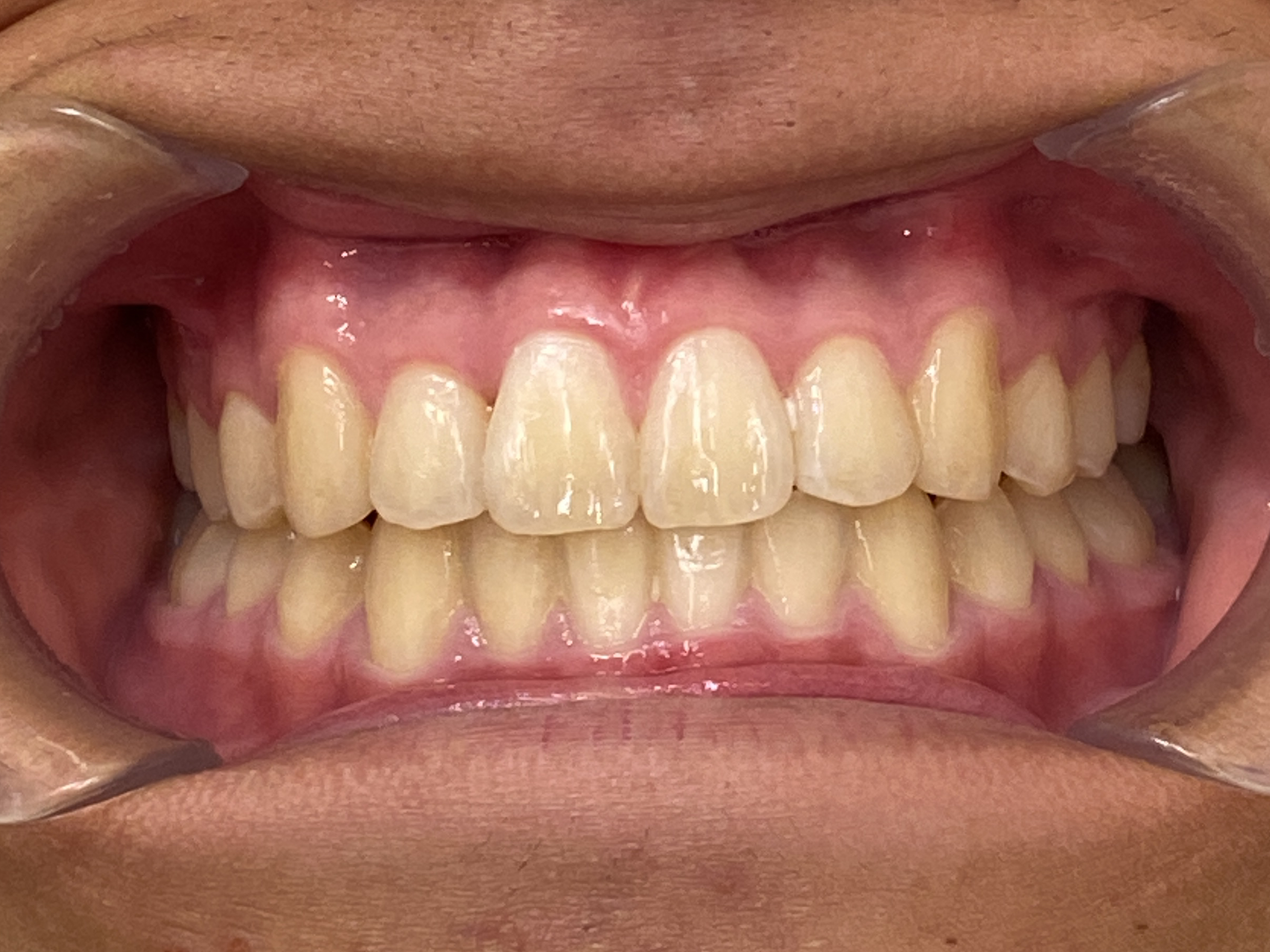 拝見したところ、上下前歯はガタガタと重なって生えている「叢生(そうせい)」の状態でした。