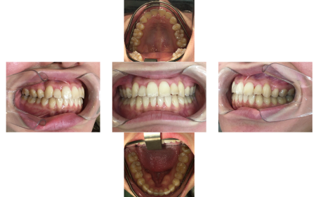 そのため、噛み合わせた時に上の左右側切歯よりも、下前歯の方が前で噛んでしまう「交叉咬合」にもなっていました。