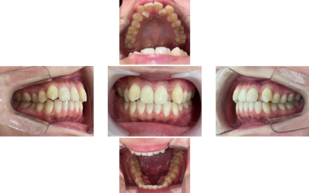上左右の側切歯は、しっかり前に出てきれいな並びになり、噛み合わせも正常になりました。
